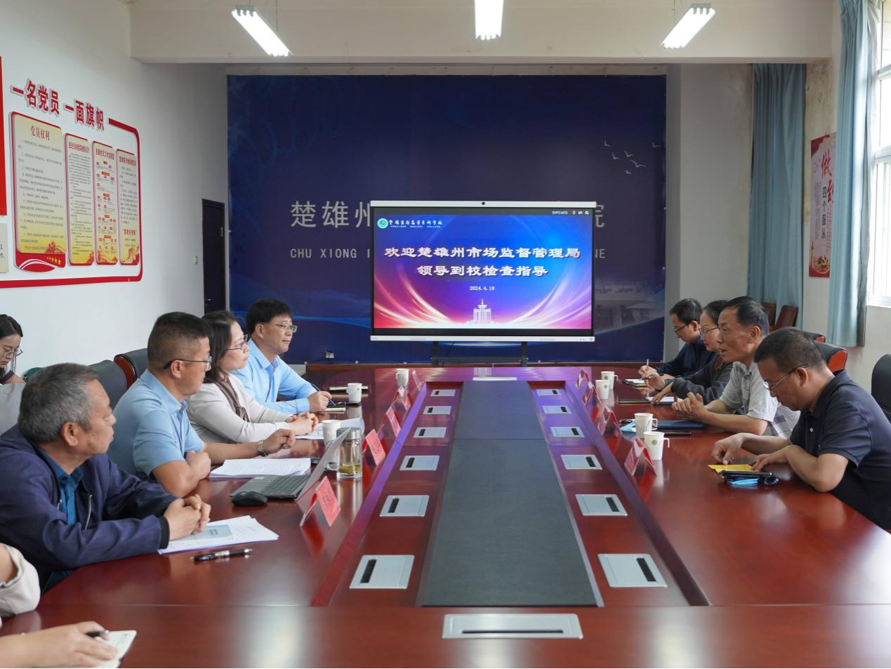 4月18日,州市场监督管理局党组书记、局长张竣珲一行到鸭脖开展食品安全检查工作,并调研彝药标准制定研究相关工作。学校党委书记车刚、校长张颖陪同调研。张竣珲一行到鸭脖食堂及周边食品的经营卫生安...