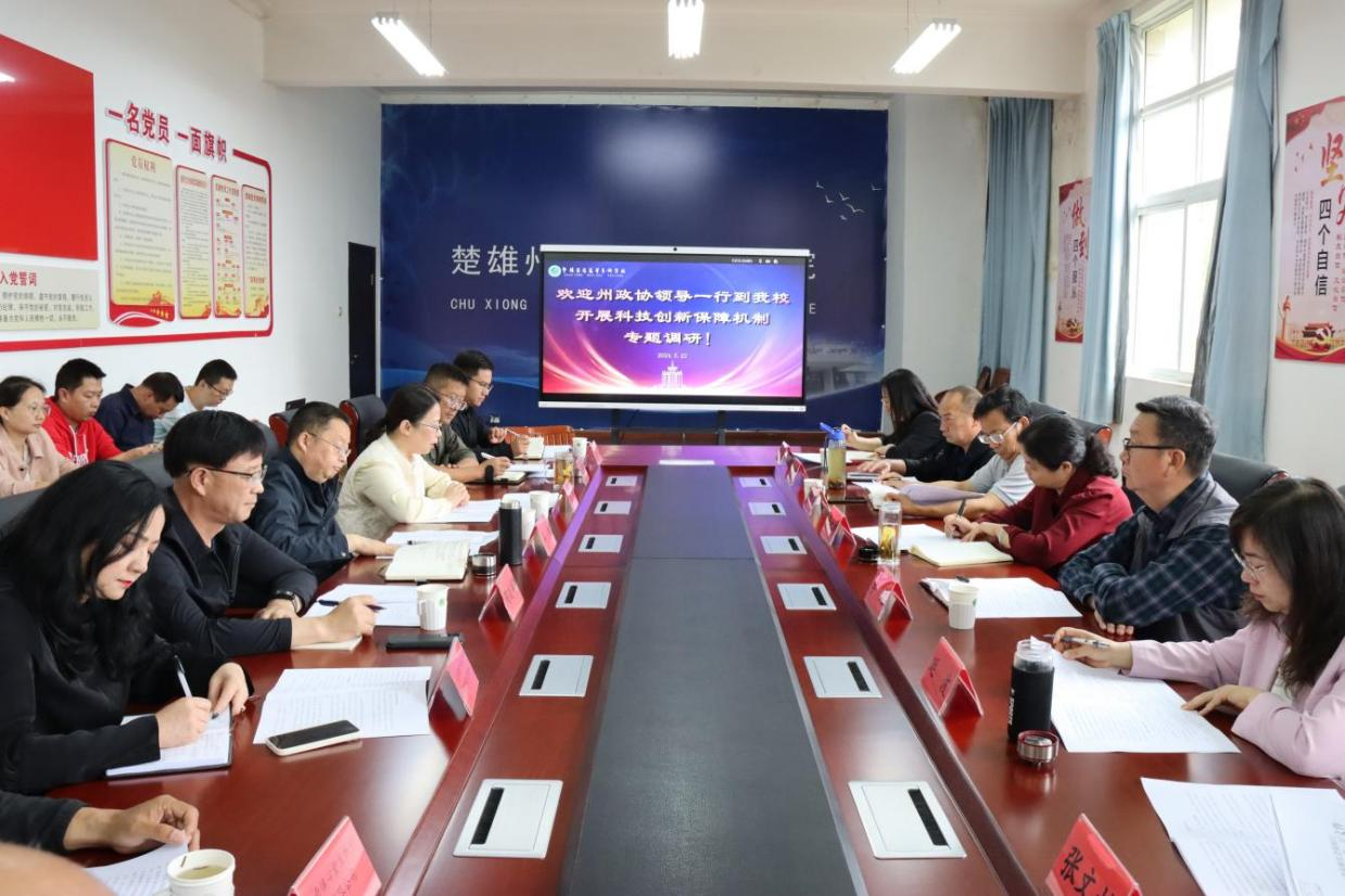 5月22日上午,楚雄州政协副主席、州工商联主席李红梅带队一行7人到楚雄州健康医药研究院科技成果展示厅、报告厅开展调研并座谈。学校党委书记车刚、校长张颖陪同调研。调研组在楚雄州健康医药研究院座...