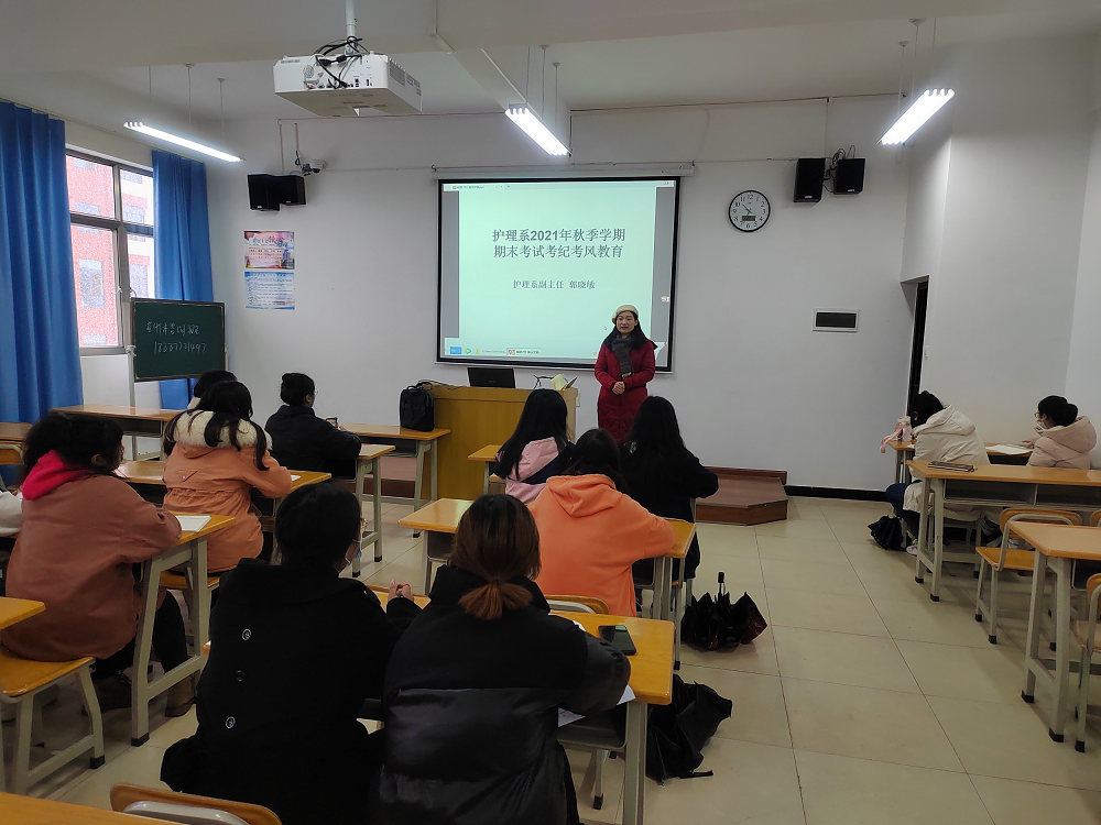 护理系组织开展考纪考风教育简讯在学校即将组织2021年秋季学期期末考试之际,我系于2022年2月22日组织开展考纪考风教育活动,本次活动分为两个部分,首先由护理系副主任郭晓敏老师对全系在校班...