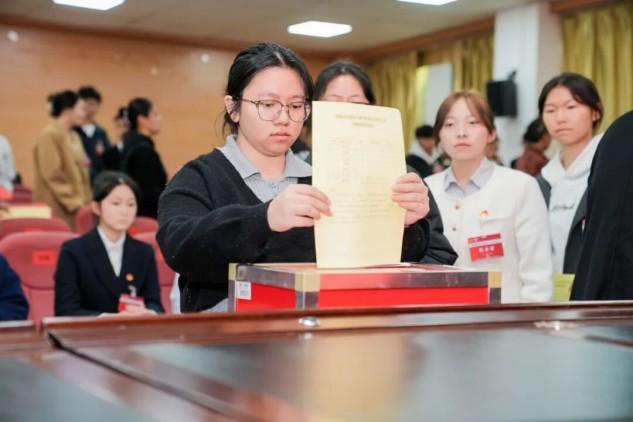根据大会议程,与会代表严格按照民主程序,审议通过了选举办法,并以无记名投票、差额选举的方式,选举产生了学校第五届学生会委员会委员和主席团成员。新当选的成员政治坚定、能力突出、群众基础扎实,展现了学生会组织薪火相传、朝气蓬勃的生机与活力。