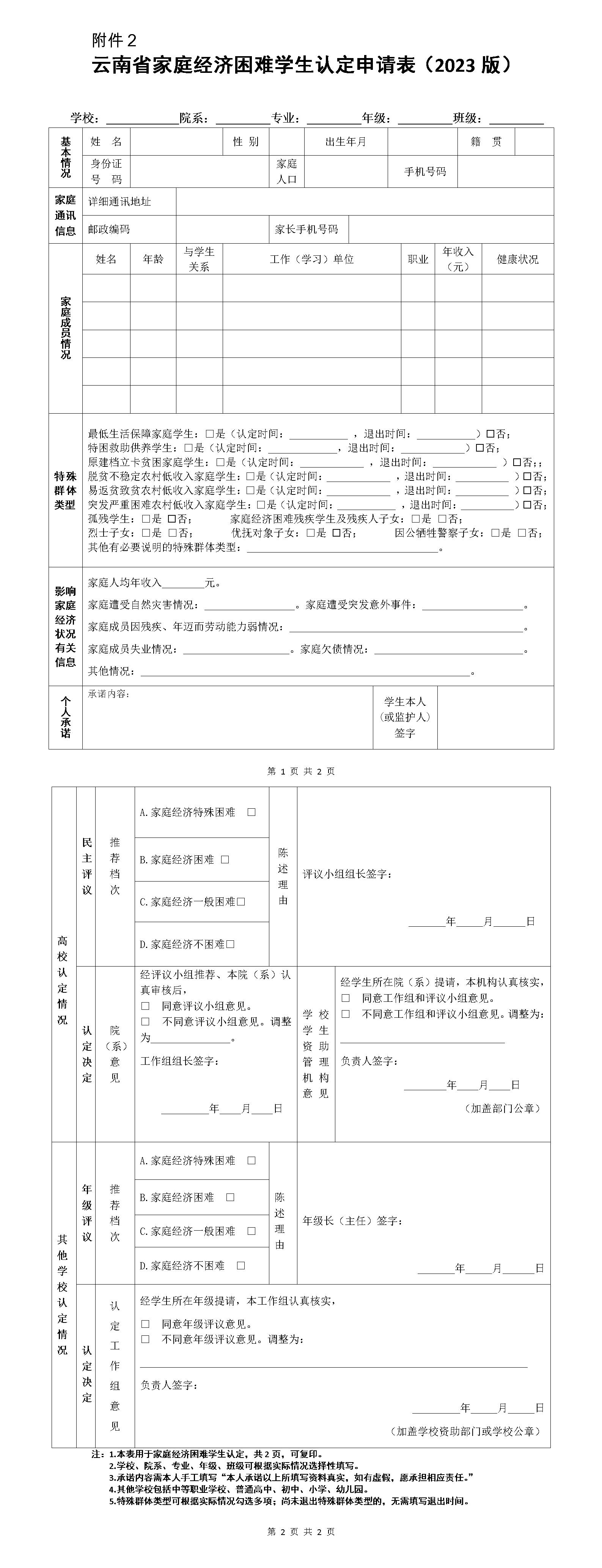 附件2:云南省家庭经济困难学生认定申请表(2023版).docx